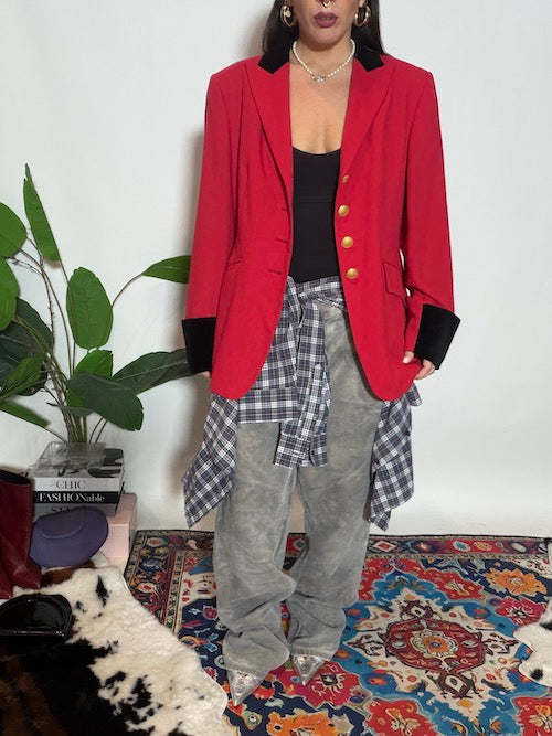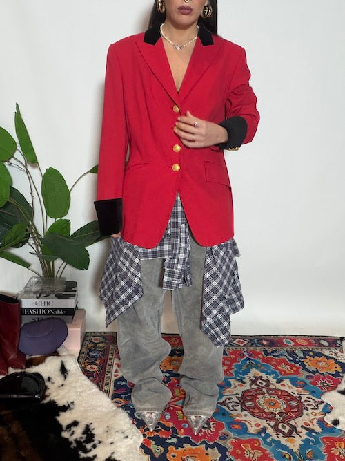 Blazer monopetto in lana vestibilita' oversize con inserti in velluto