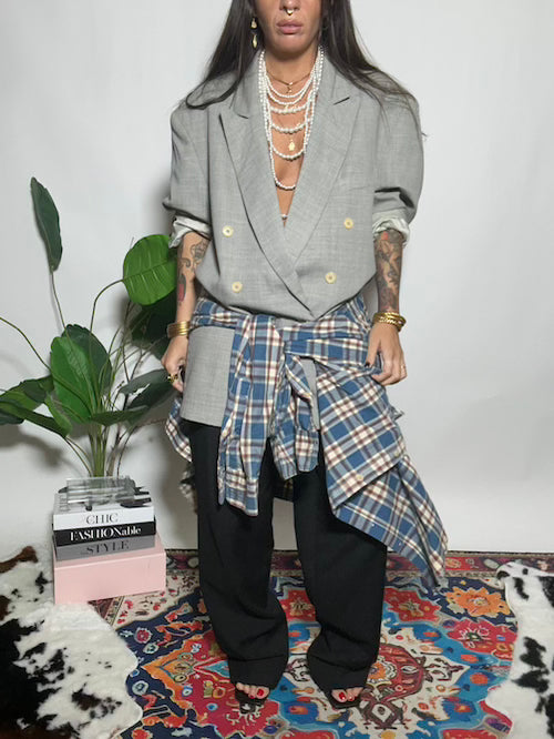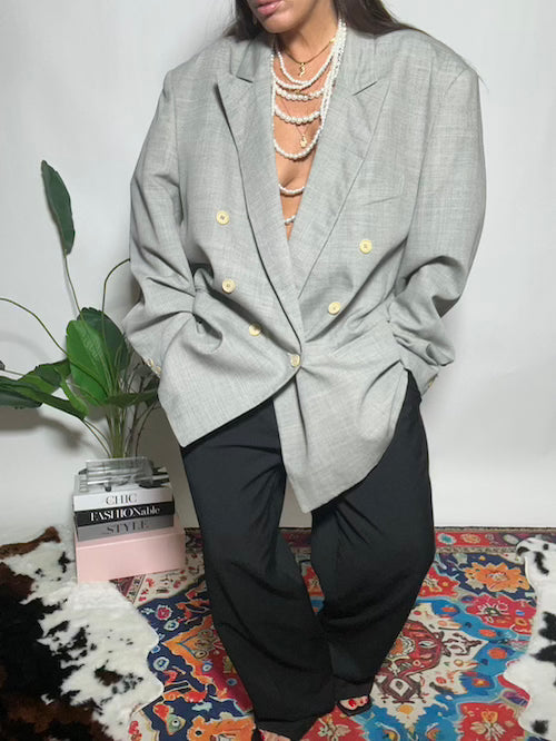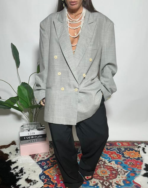 Blazer doppiopetto in viscosa e lana vestibilita' oversize con spalline