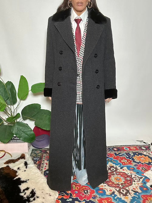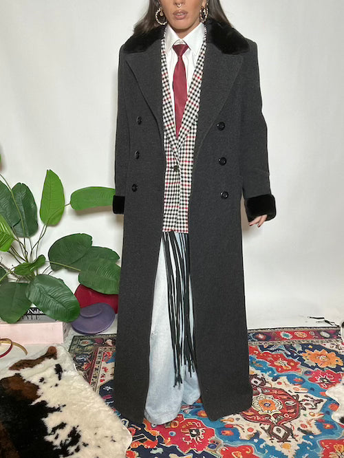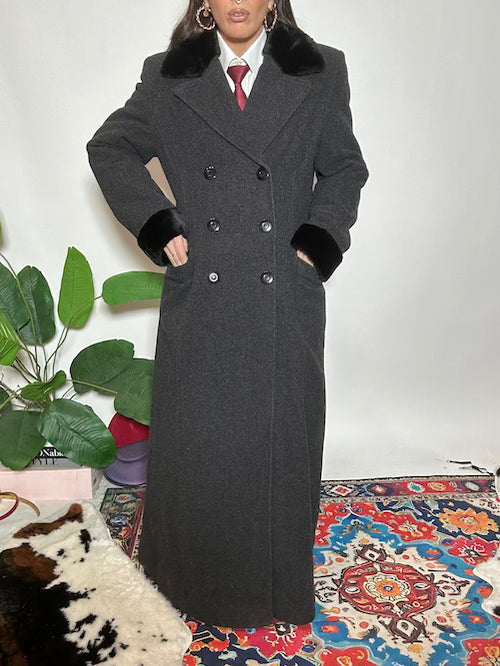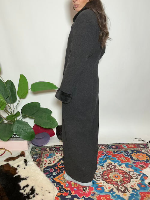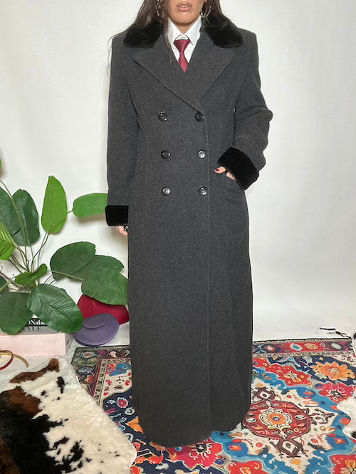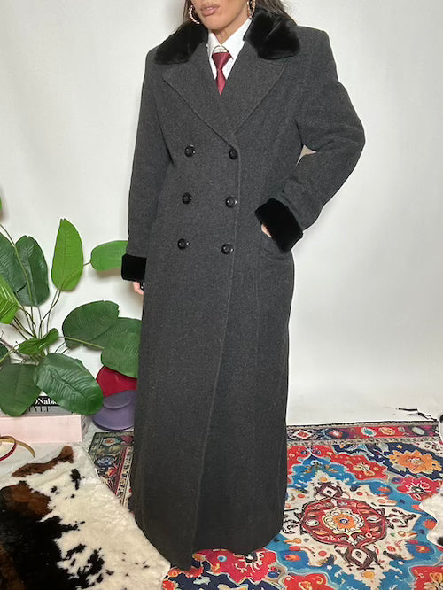 Cappotto in pura lana doppiopetto con inserti in pelliccia ecologica vestibilita' morbida