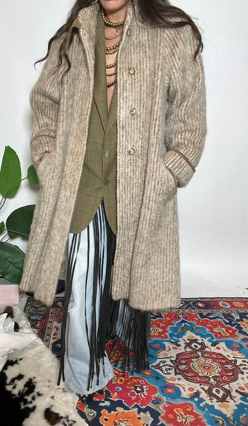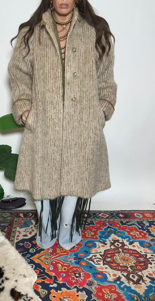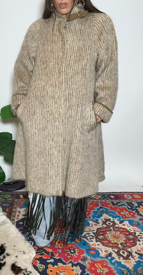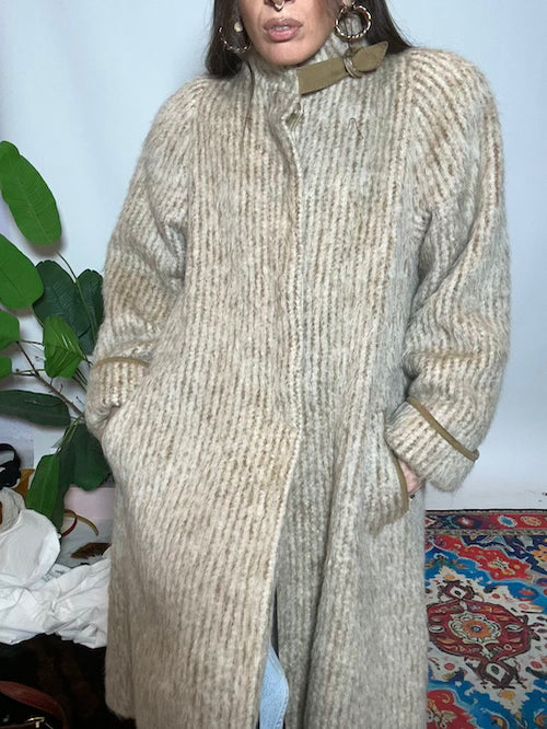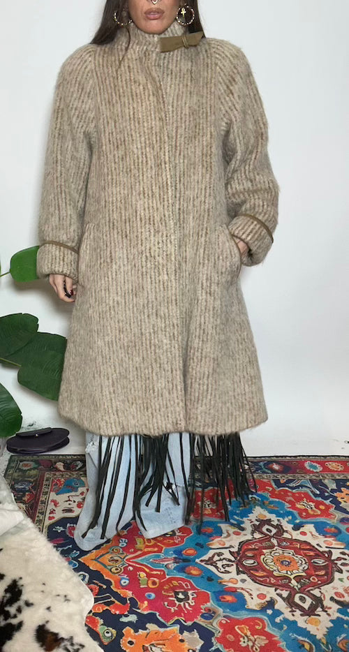 Cappotto in pura lana collo alto vestibilita' oversize con spallina tonda