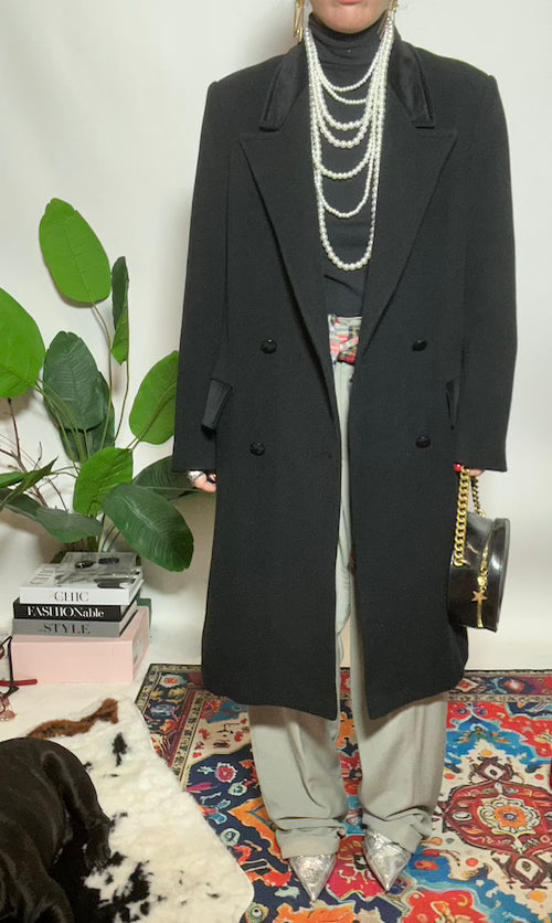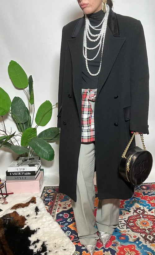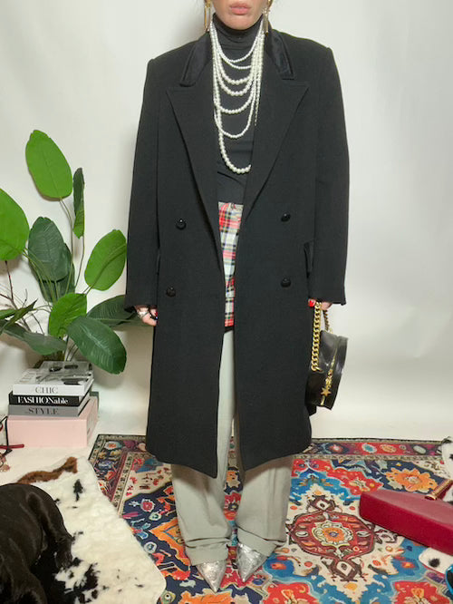 Cappotto doppiopetto in pura lana con inserti in vellutto lunghezza midi