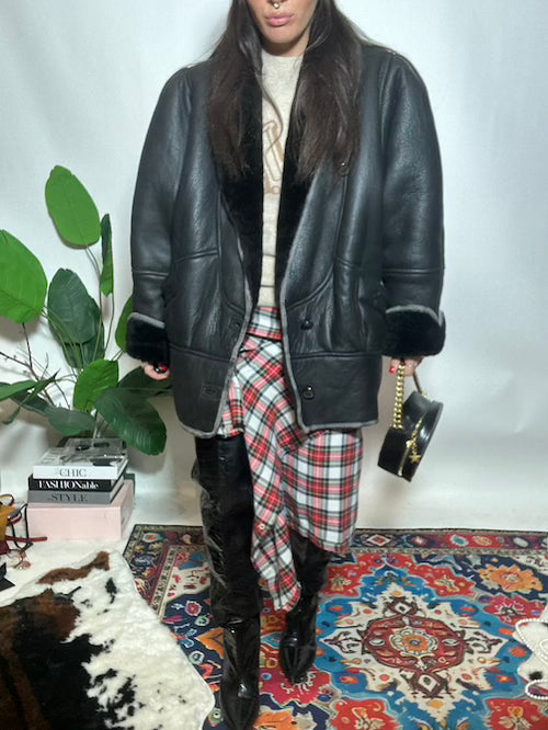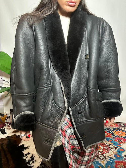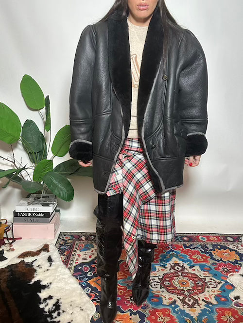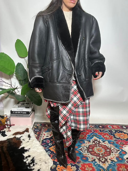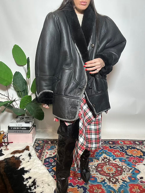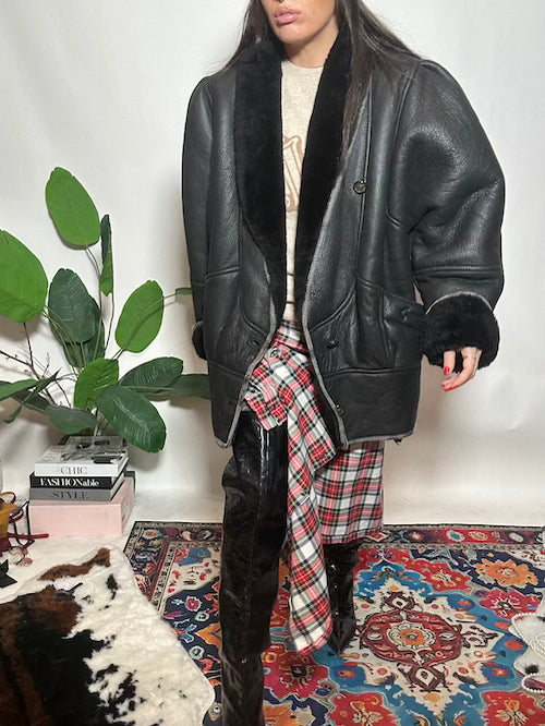 Montone in vera pelle con interno in pelliccia tono su tono vestibilita' oversize
